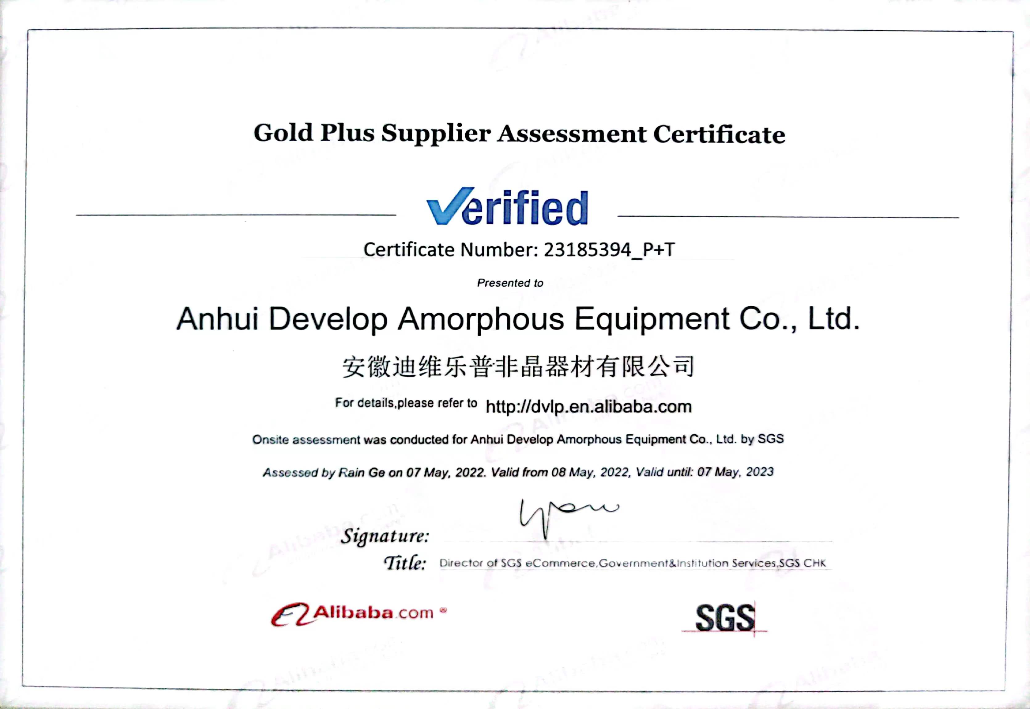• SGS質(zhì)量體系證書